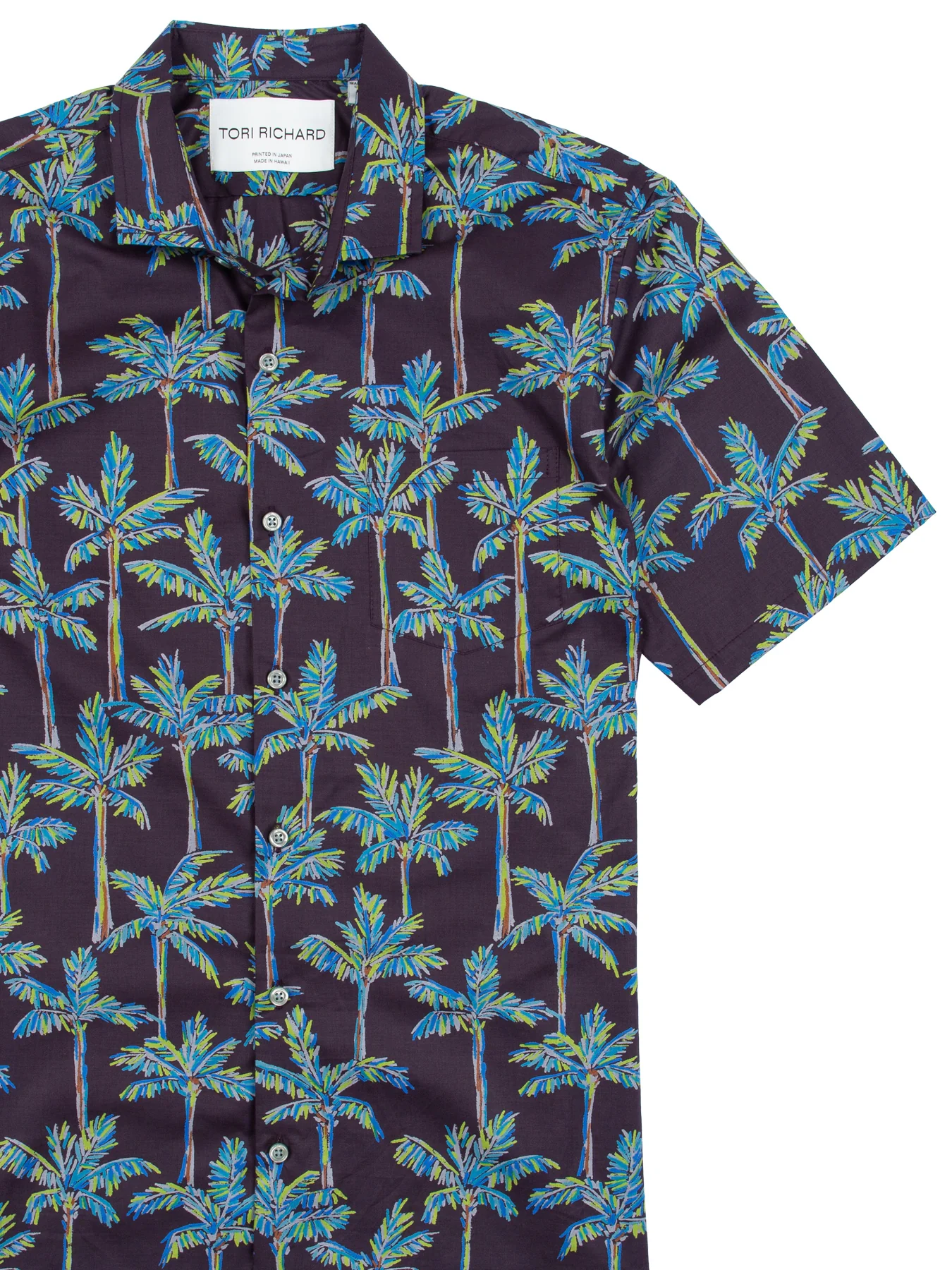 Printed on 100% cotton lawn fabric using screen-cutting techniques we've been perfecting for over 60 years. Our cotton lawn shirts are ideal for humid climates thanks to a lightweight hand and crease-resistant properties. Each is treated with a proprietary finish that creates a subtle luster. They're printed in Japan, then hand-cut and sewn in Hawai’i, USA.